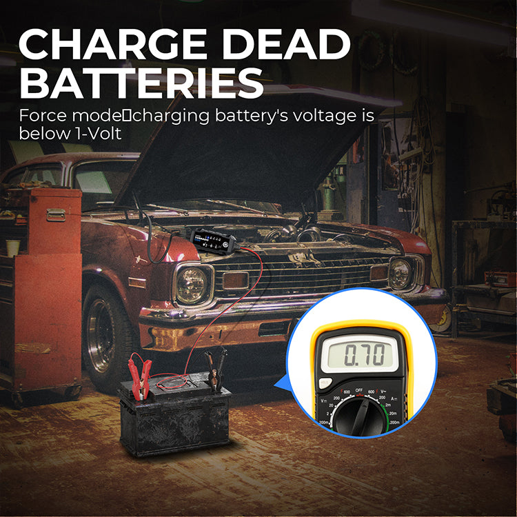 Works with 6V & 12V Lead-acid and 12V lithium-ion batteries, including Wet, MF, GEL, and AGM types, from 10Ah up to 80Ah.