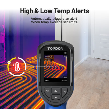 Pinpoint issues and hidden faults instantly with automatic detection of the hottest, coldest, and center points. You can set your own custom temperature thresholds, and the TC004 Mini thermal camera will flash a warning and capture a photo for easy documentation.