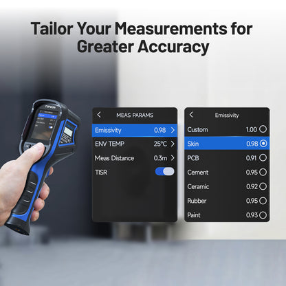 Fine-tune your thermal camera for the surface you’re testing to get accurate results every time. Set emissivity, distance, and ambient conditions to match the material you’re testing so you get readings you can rely on. Whether you’re scanning metal, insulation, or concrete, you can trust the TC004 Mini.