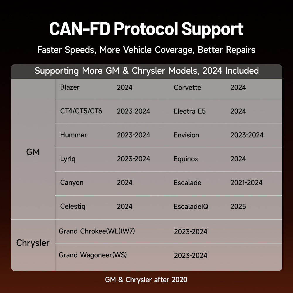 The ArtiDiag700 diagnostic tool supports the CAN-FD protocol, delivering fast and reliable data processing for more modern vehicles. Combined with FCA and Renault gateway access, you can easily bypass the security gateway and perform thorough diagnostics on the latest models from both brands.