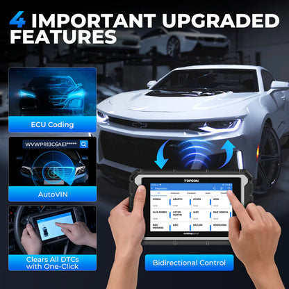 Accesses vehicle-specific subsystems and component parts to drive actuators for specific functions. This feature helps determine the integrity of systems or parts, allowing users to analyze and locate faults accurately. Bidirectional control includes components like fuel injectors, coolant pumps, windows, and windshield wipers.