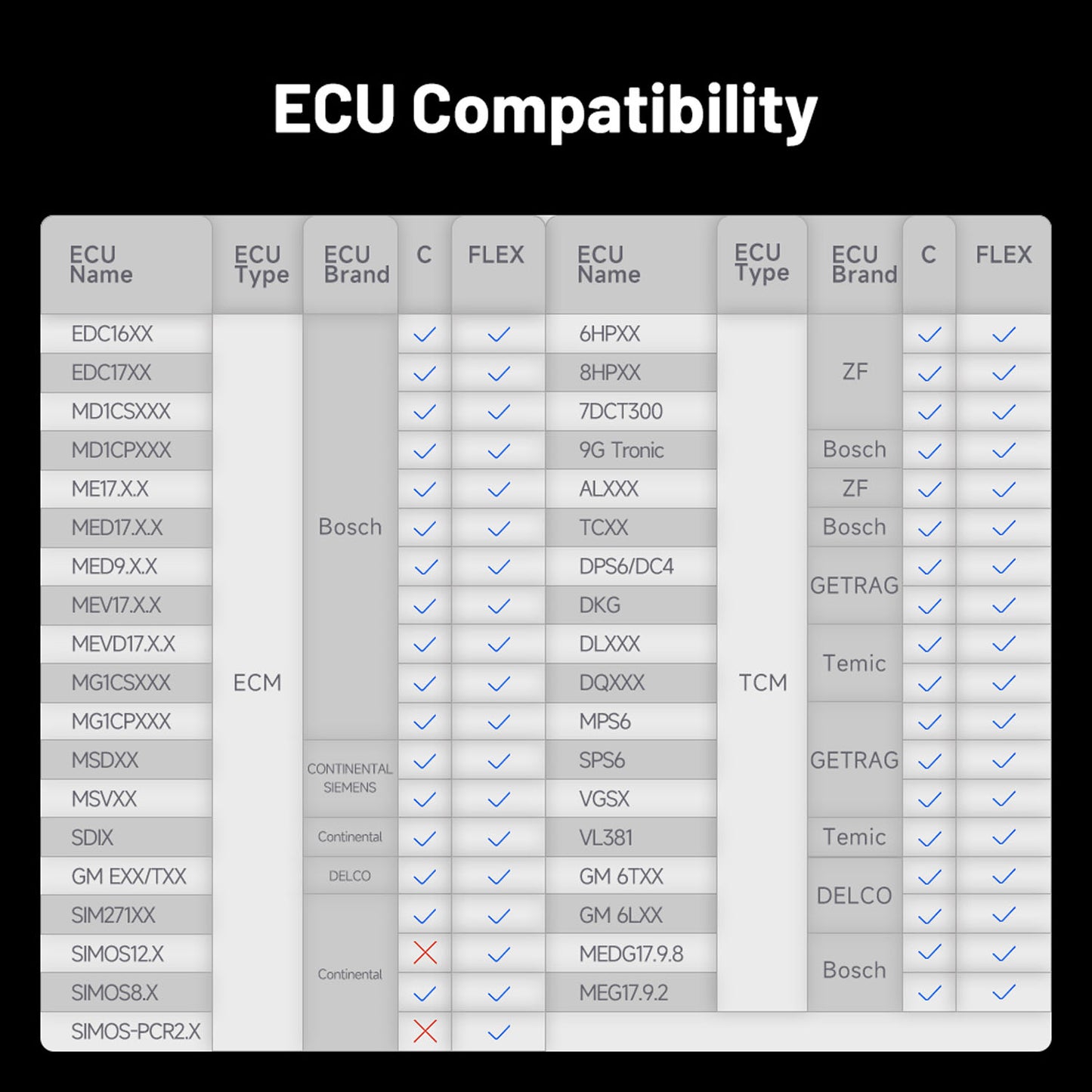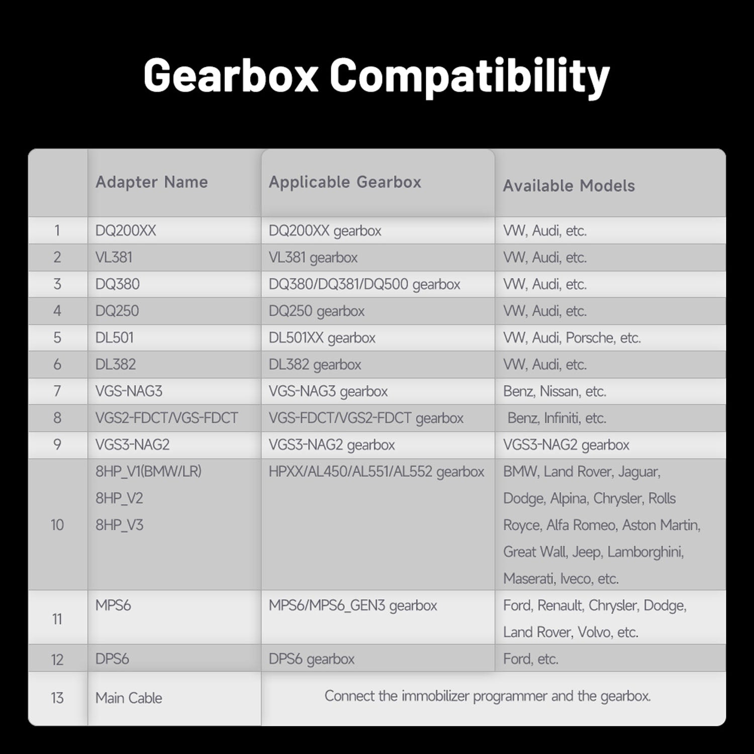 You don’t have to worry about managing various tools for different ECUs. Featuring 12 adapters to work seamlessly with different Gearbox ECUs, whether you are working on BMW, VW, Benz, or Ford vehicles, this kit ensures compatibility with many makes and models.