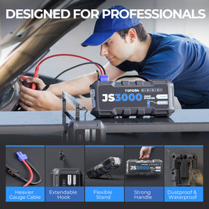 3000 Peak Amp Battery Jumpstarter, Power Bank, & Flashlight