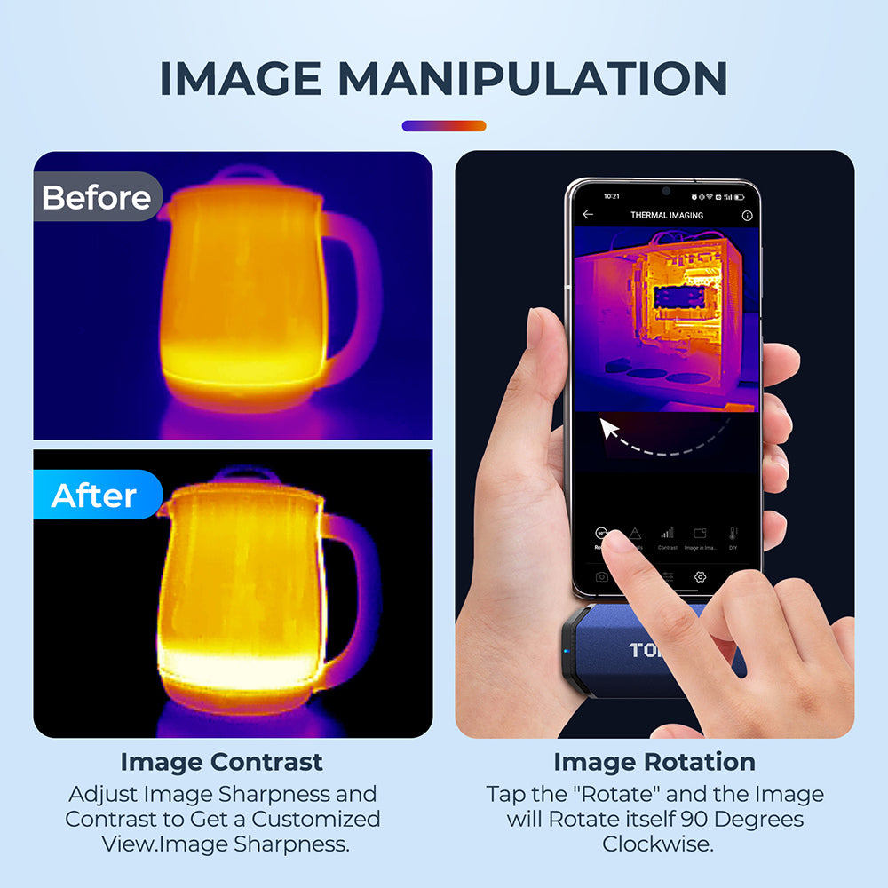 • Featuring a DIY temperature range ability, the TOPDON infrared thermal camera allows users to set upper and lower limits, and corresponding colors.